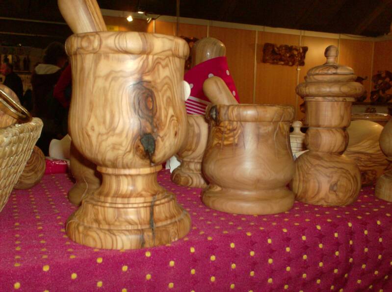 Enkele voorbeelden van in olijfhout met de hand gedraaide voorwerpen zoals: